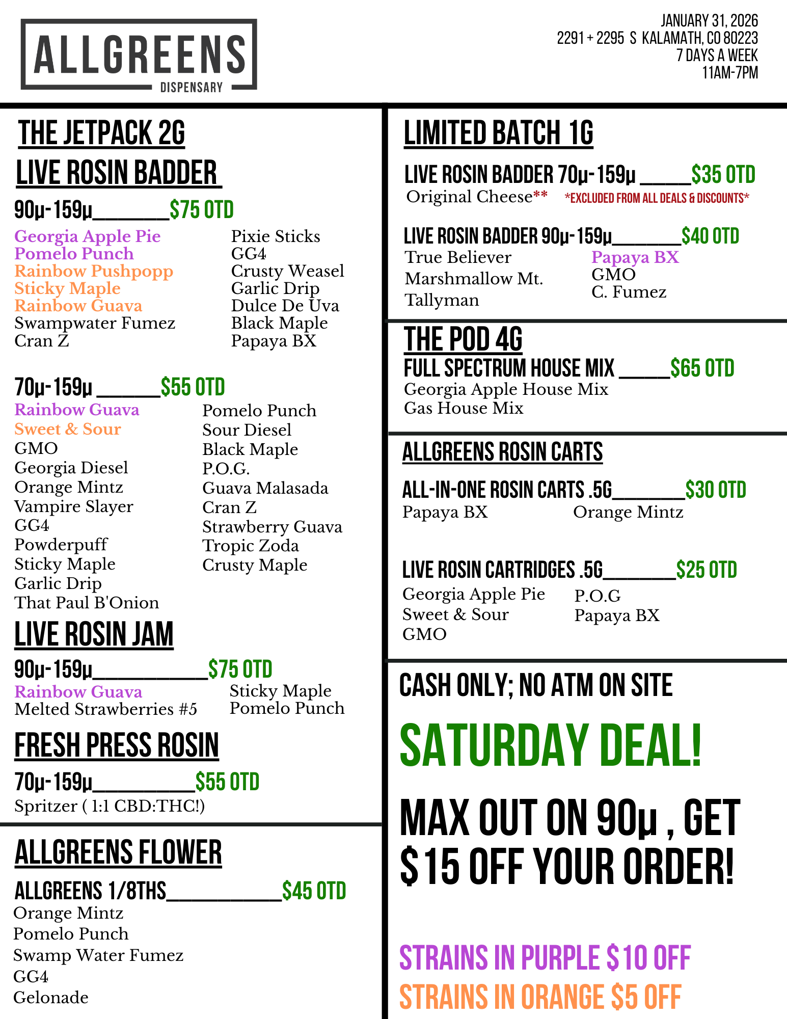 Our move into the Rec market isn’t about chasing trends—it’s about showing that a dispensary can grow while staying true to its roots. We’re not here to push commercialized mids—we’re here to set the bar for premium cannabis concentrates and top-tier dispensary experiences. We’ve been leading the industry since day one, and we’re not stopping now. We’re proud to create connoisseur-grade products with care, passion, and an unwavering commitment to quality. Allgreens started as Colorado’s first licensed medical cannabis dispensary, built on compassion and craft. Now, we bring that same quality to the recreational market — without compromise.