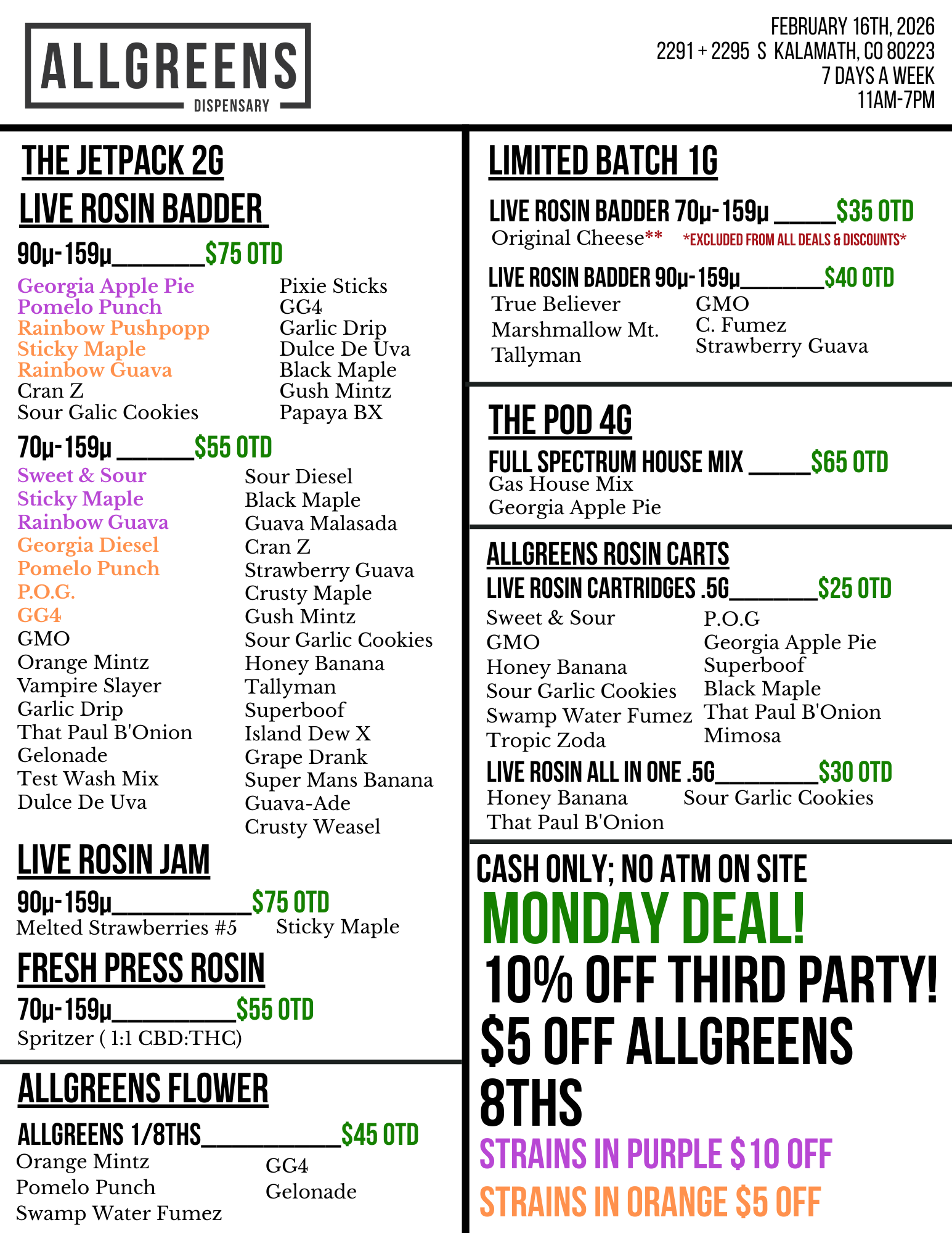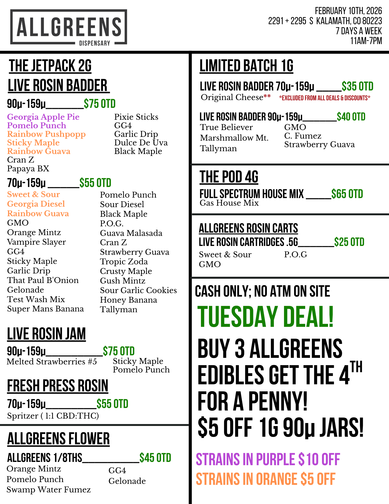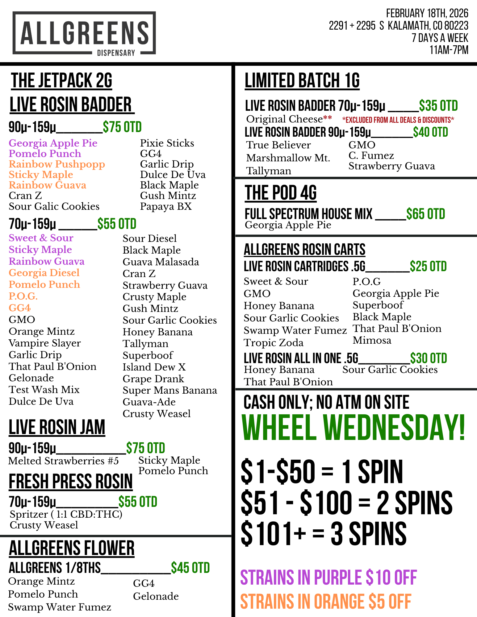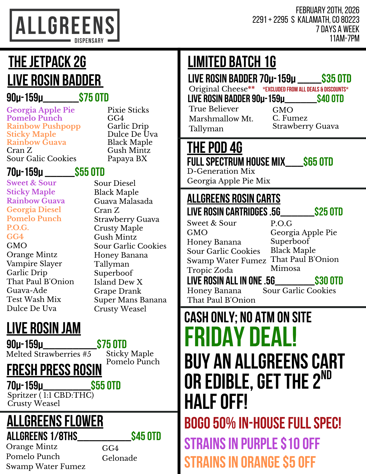 Our move into the Rec market isn’t about chasing trends—it’s about showing that a dispensary can grow while staying true to its roots. We’re not here to push commercialized mids—we’re here to set the bar for premium cannabis concentrates and top-tier dispensary experiences. We’ve been leading the industry since day one, and we’re not stopping now. We’re proud to create connoisseur-grade products with care, passion, and an unwavering commitment to quality. Allgreens started as Colorado’s first licensed medical cannabis dispensary, built on compassion and craft. Now, we bring that same quality to the recreational market — without compromise.