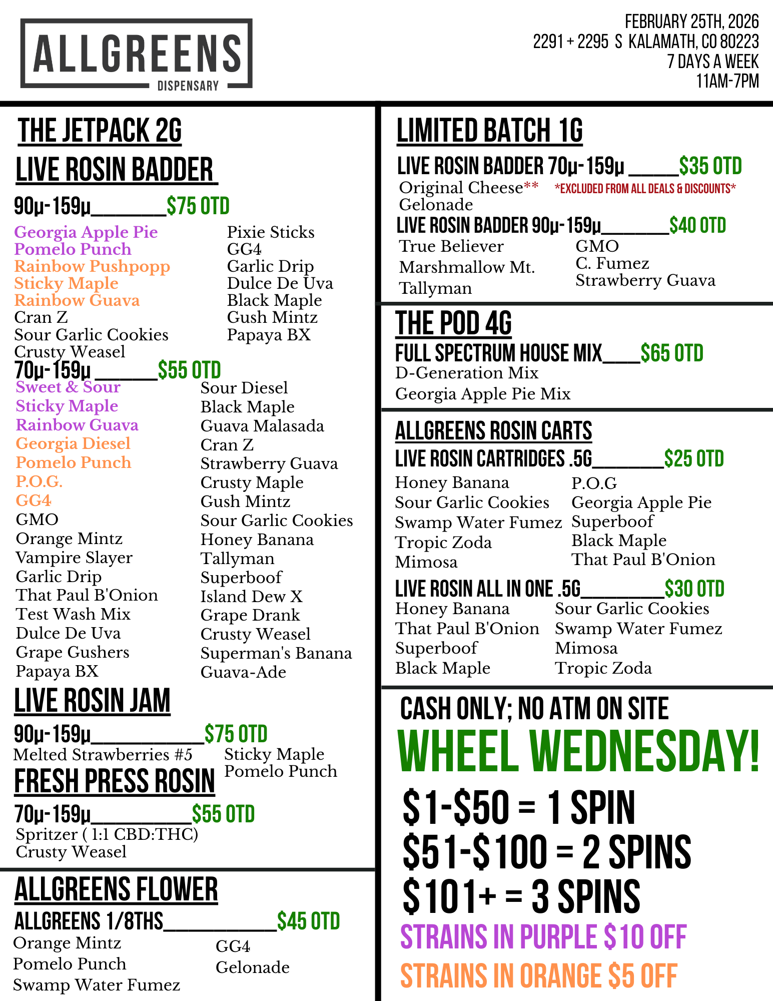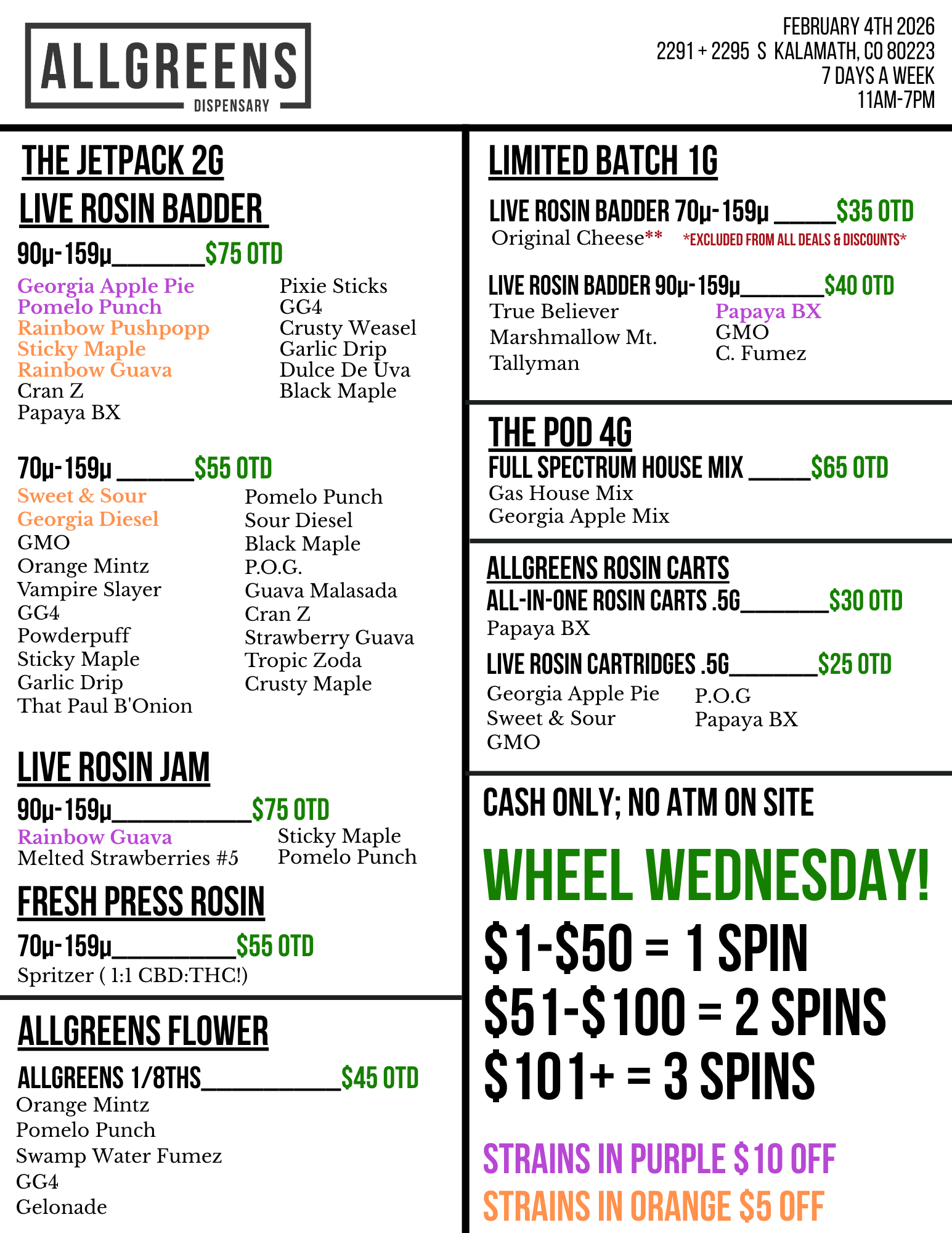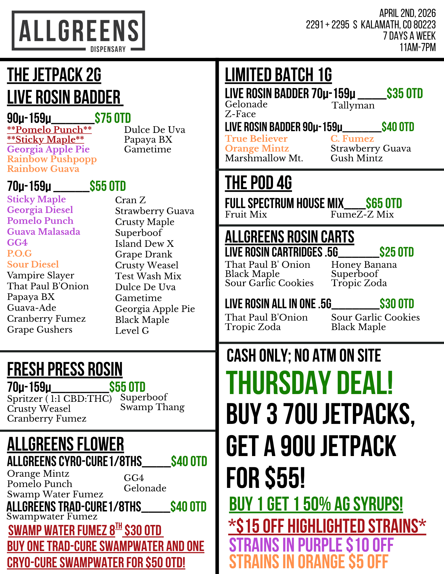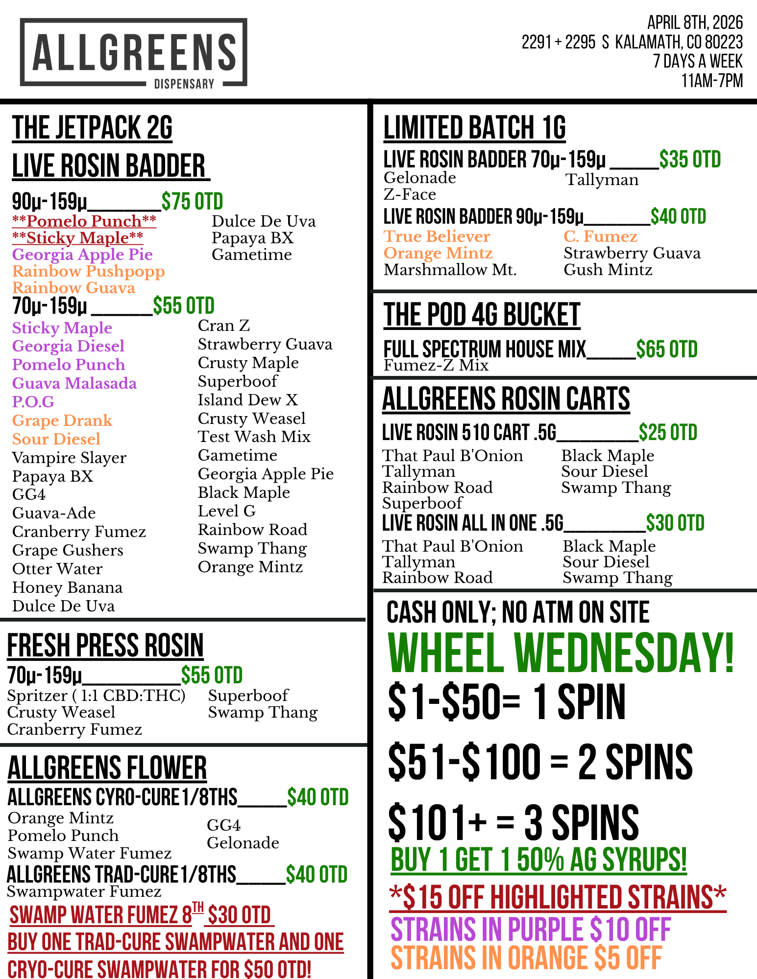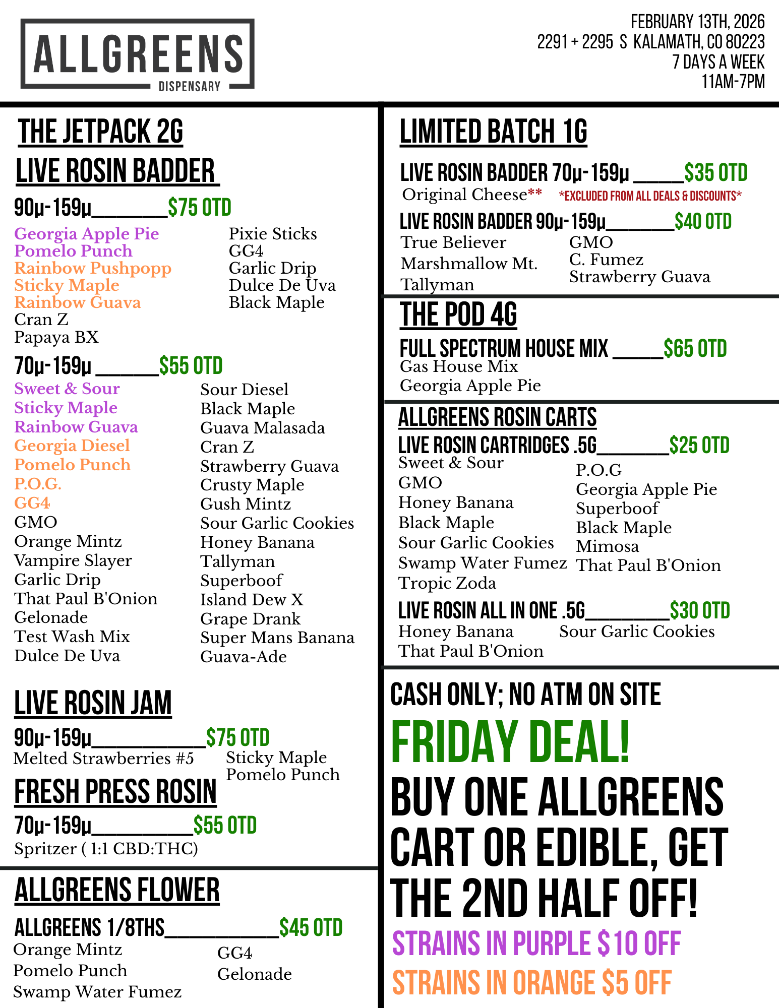 Our move into the Rec market isn’t about chasing trends—it’s about showing that a dispensary can grow while staying true to its roots. We’re not here to push commercialized mids—we’re here to set the bar for premium cannabis concentrates and top-tier dispensary experiences. We’ve been leading the industry since day one, and we’re not stopping now. We’re proud to create connoisseur-grade products with care, passion, and an unwavering commitment to quality. Allgreens started as Colorado’s first licensed medical cannabis dispensary, built on compassion and craft. Now, we bring that same quality to the recreational market — without compromise.