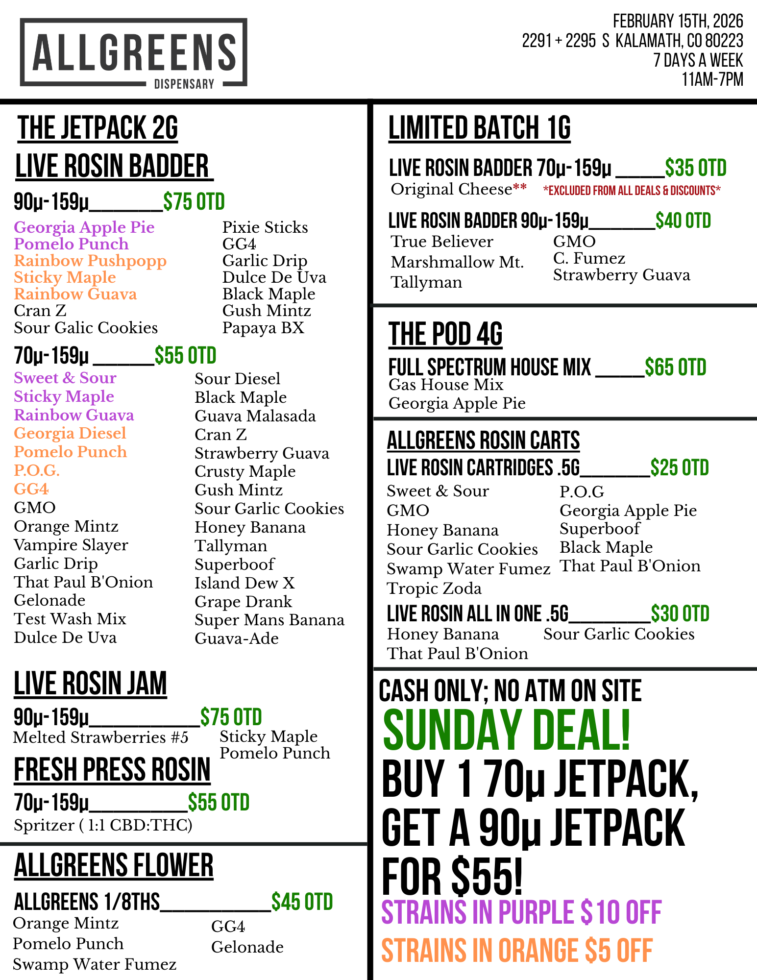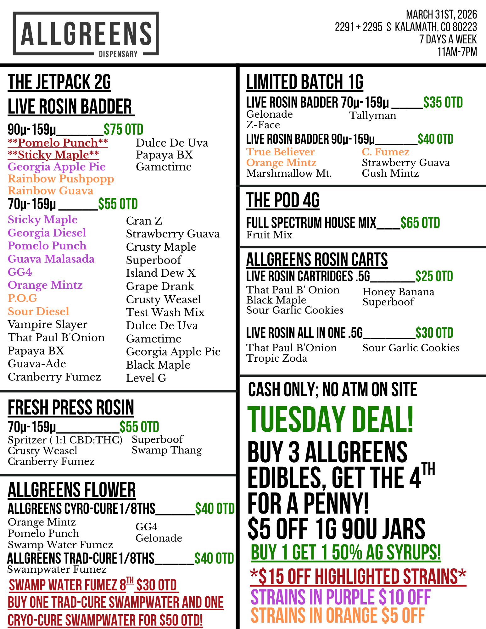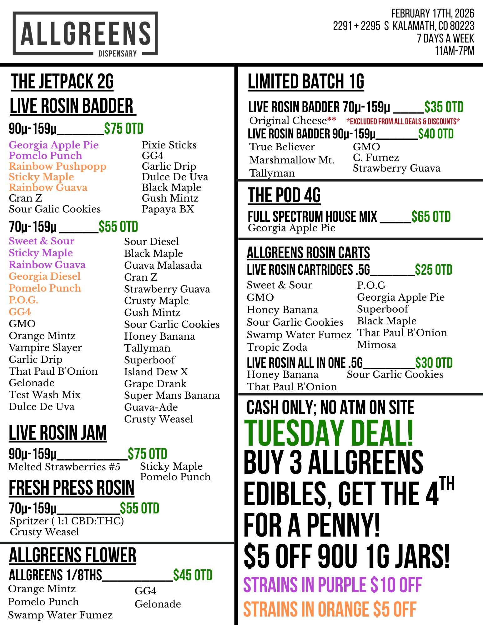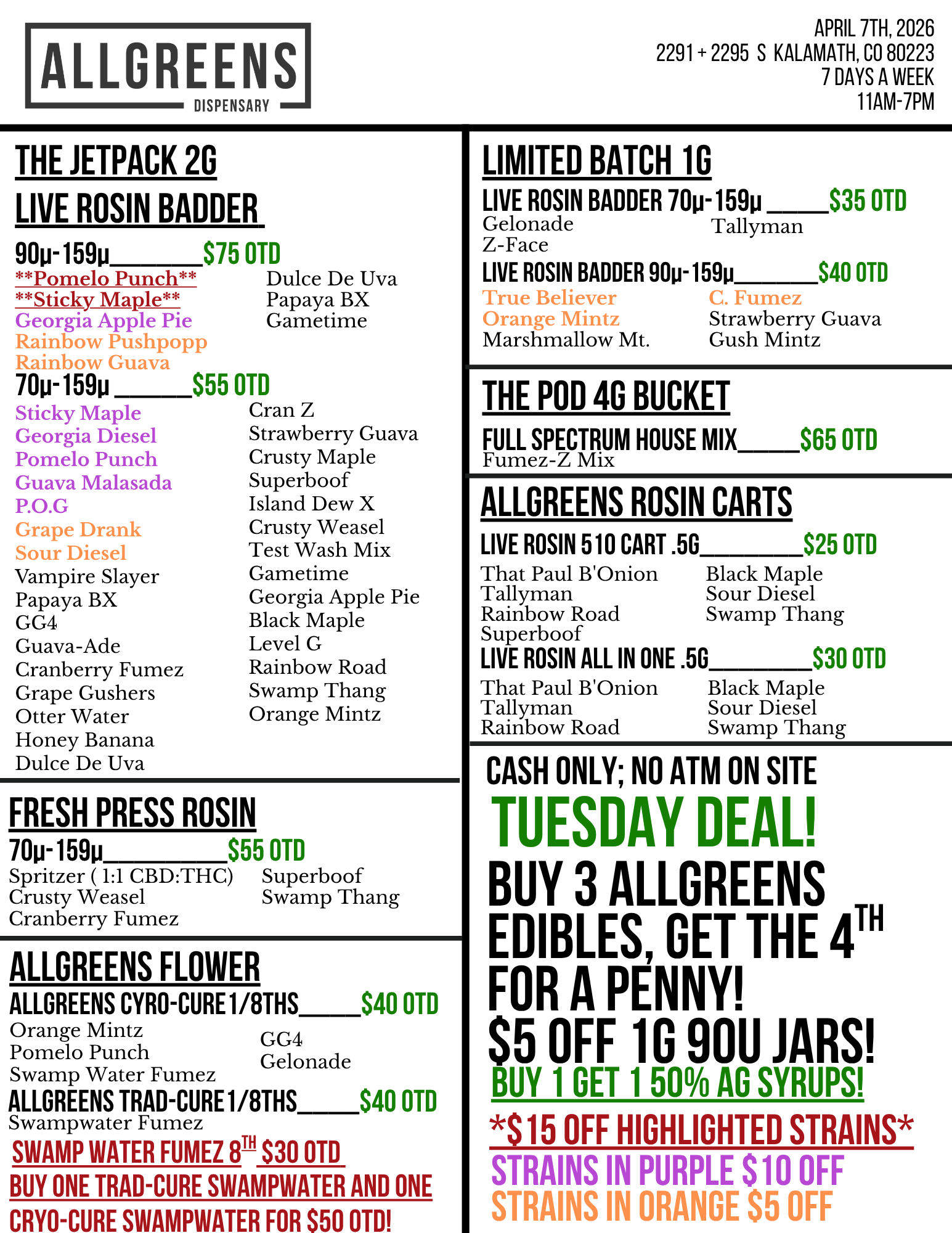 Our move into the Rec market isn’t about chasing trends—it’s about showing that a dispensary can grow while staying true to its roots. We’re not here to push commercialized mids—we’re here to set the bar for premium cannabis concentrates and top-tier dispensary experiences. We’ve been leading the industry since day one, and we’re not stopping now. We’re proud to create connoisseur-grade products with care, passion, and an unwavering commitment to quality. Allgreens started as Colorado’s first licensed medical cannabis dispensary, built on compassion and craft. Now, we bring that same quality to the recreational market — without compromise.