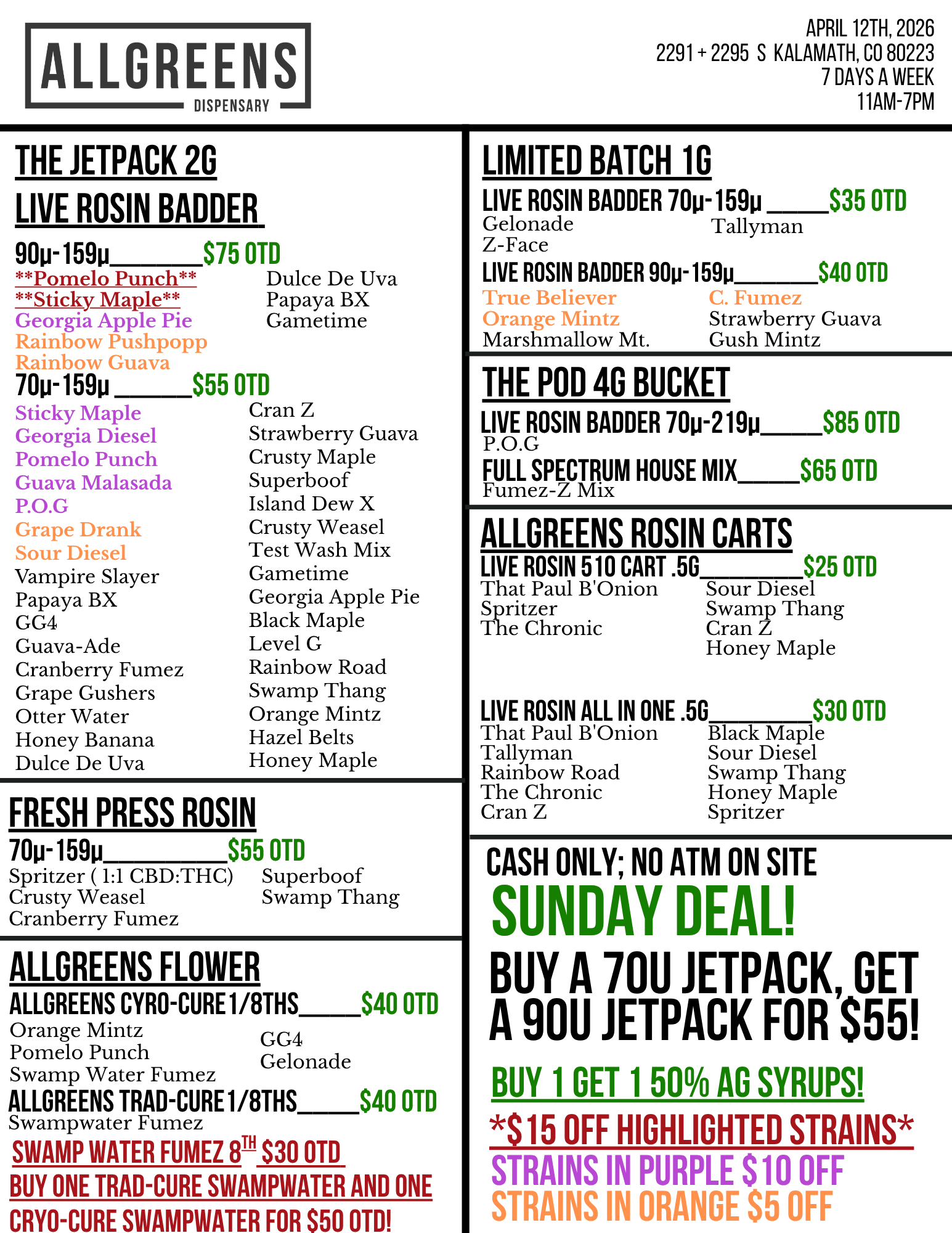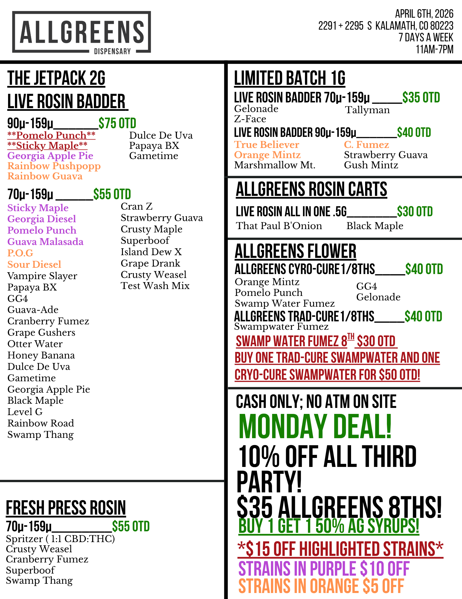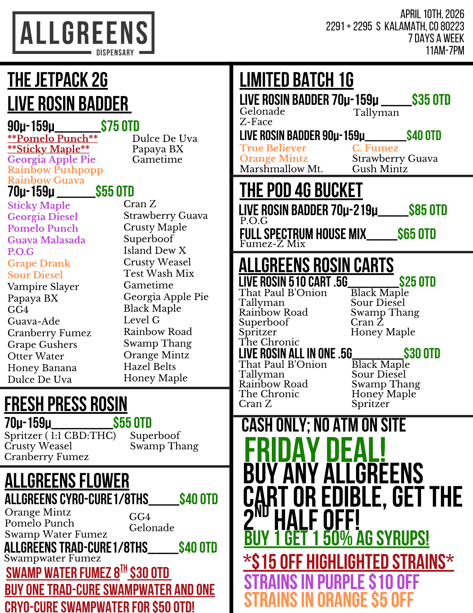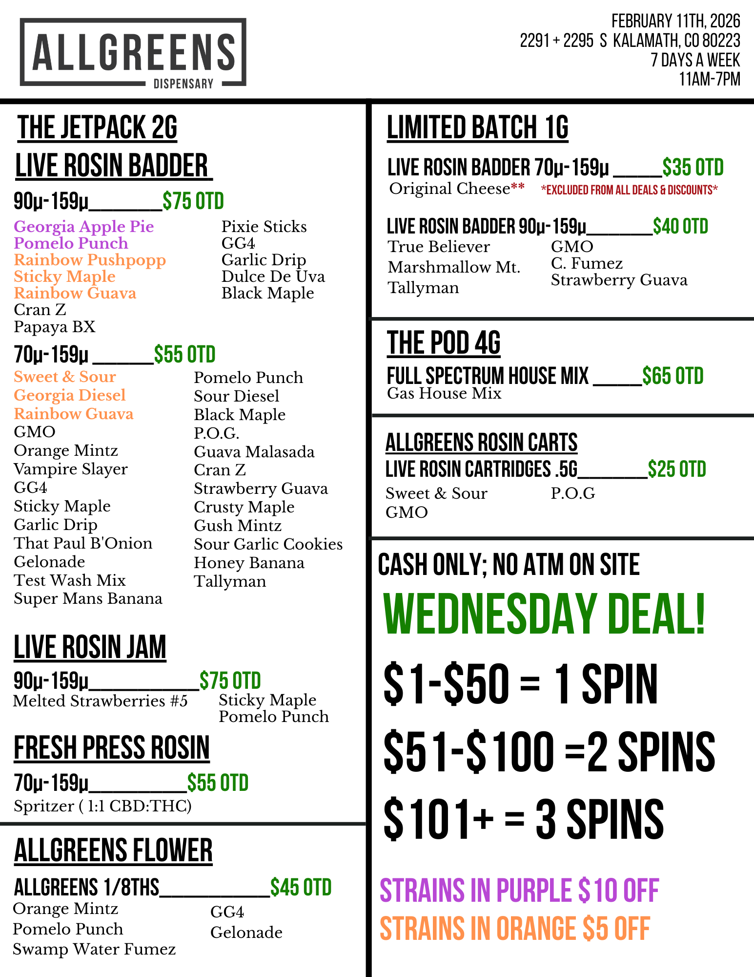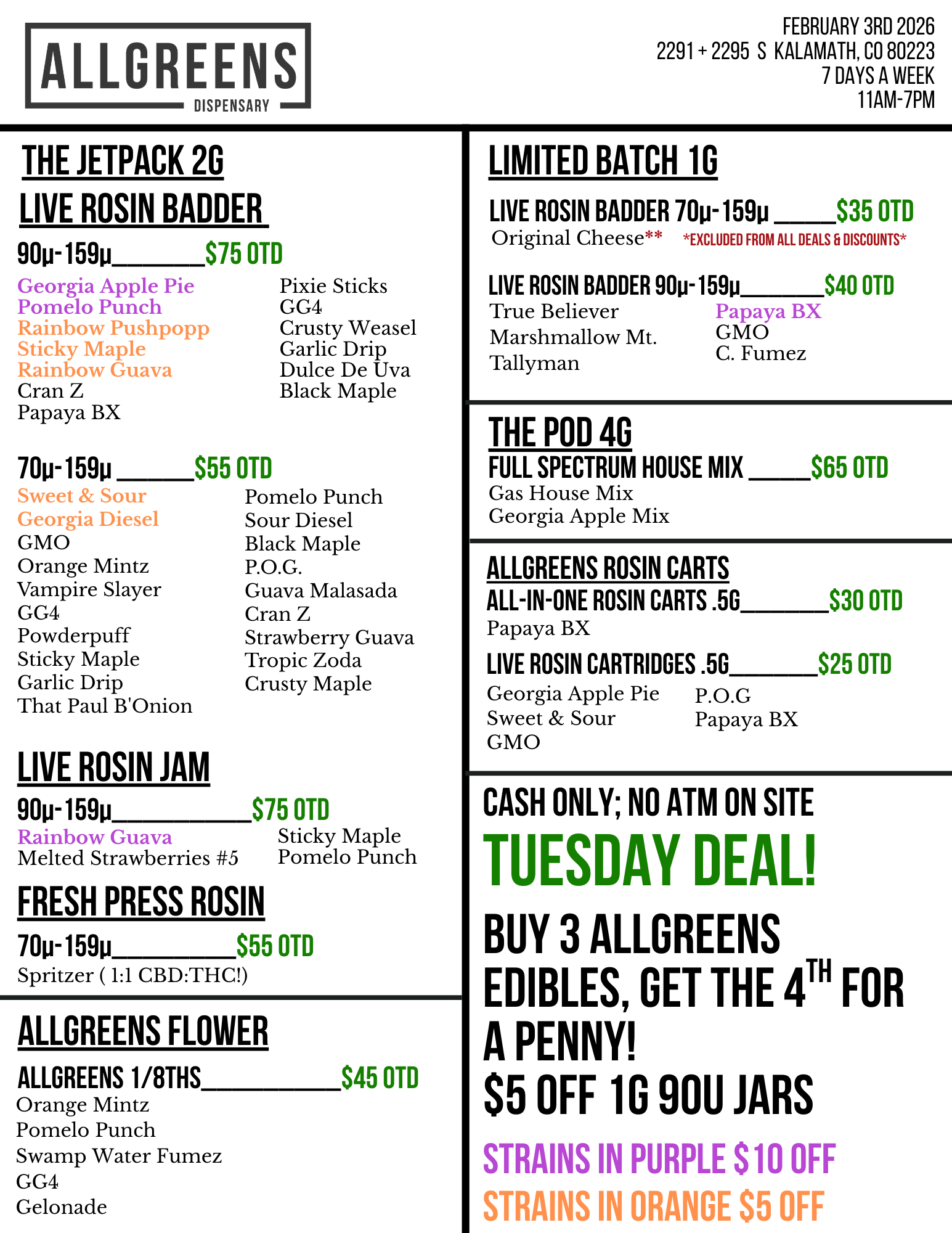 Our move into the Rec market isn’t about chasing trends—it’s about showing that a dispensary can grow while staying true to its roots. We’re not here to push commercialized mids—we’re here to set the bar for premium cannabis concentrates and top-tier dispensary experiences. We’ve been leading the industry since day one, and we’re not stopping now. We’re proud to create connoisseur-grade products with care, passion, and an unwavering commitment to quality. Allgreens started as Colorado’s first licensed medical cannabis dispensary, built on compassion and craft. Now, we bring that same quality to the recreational market — without compromise.