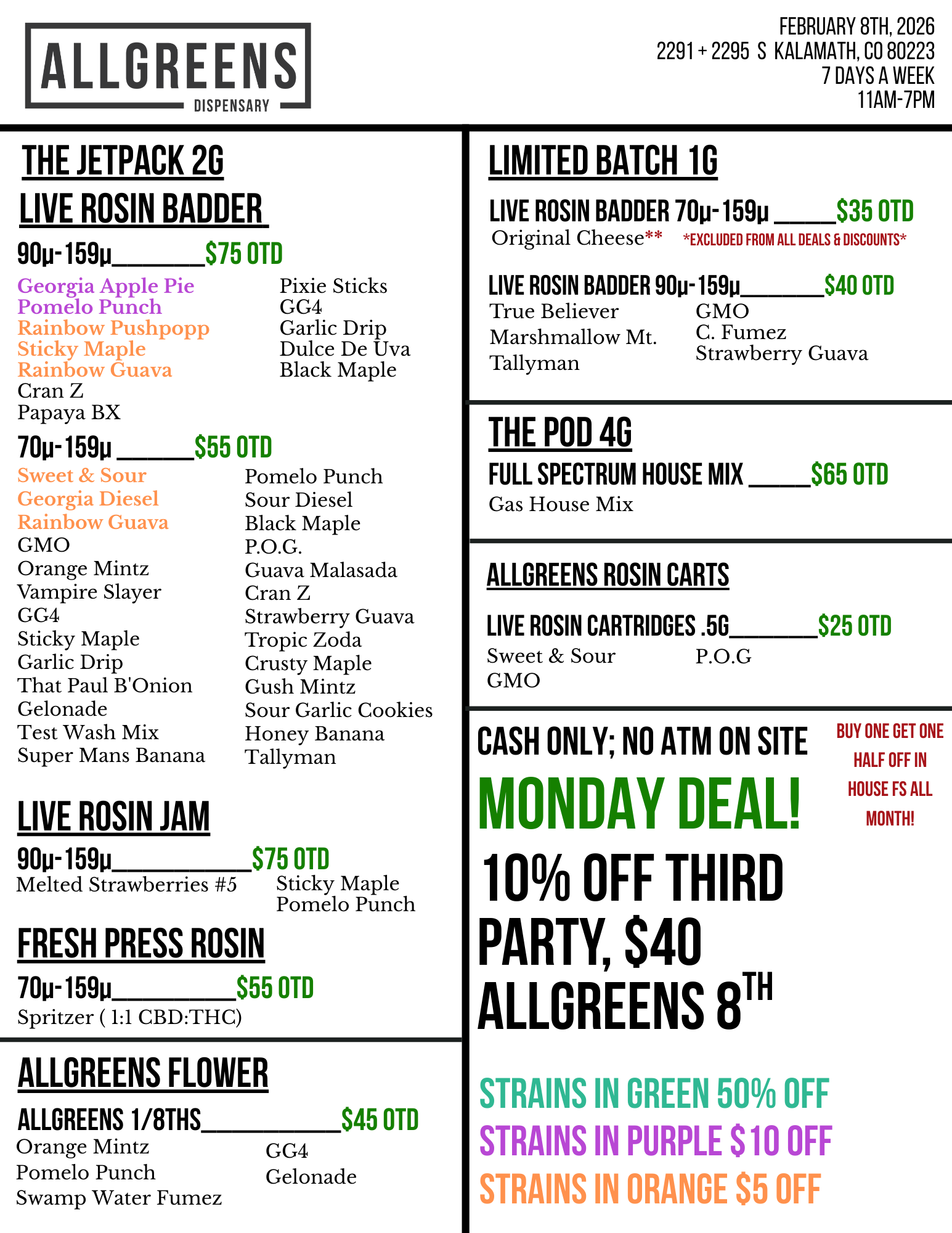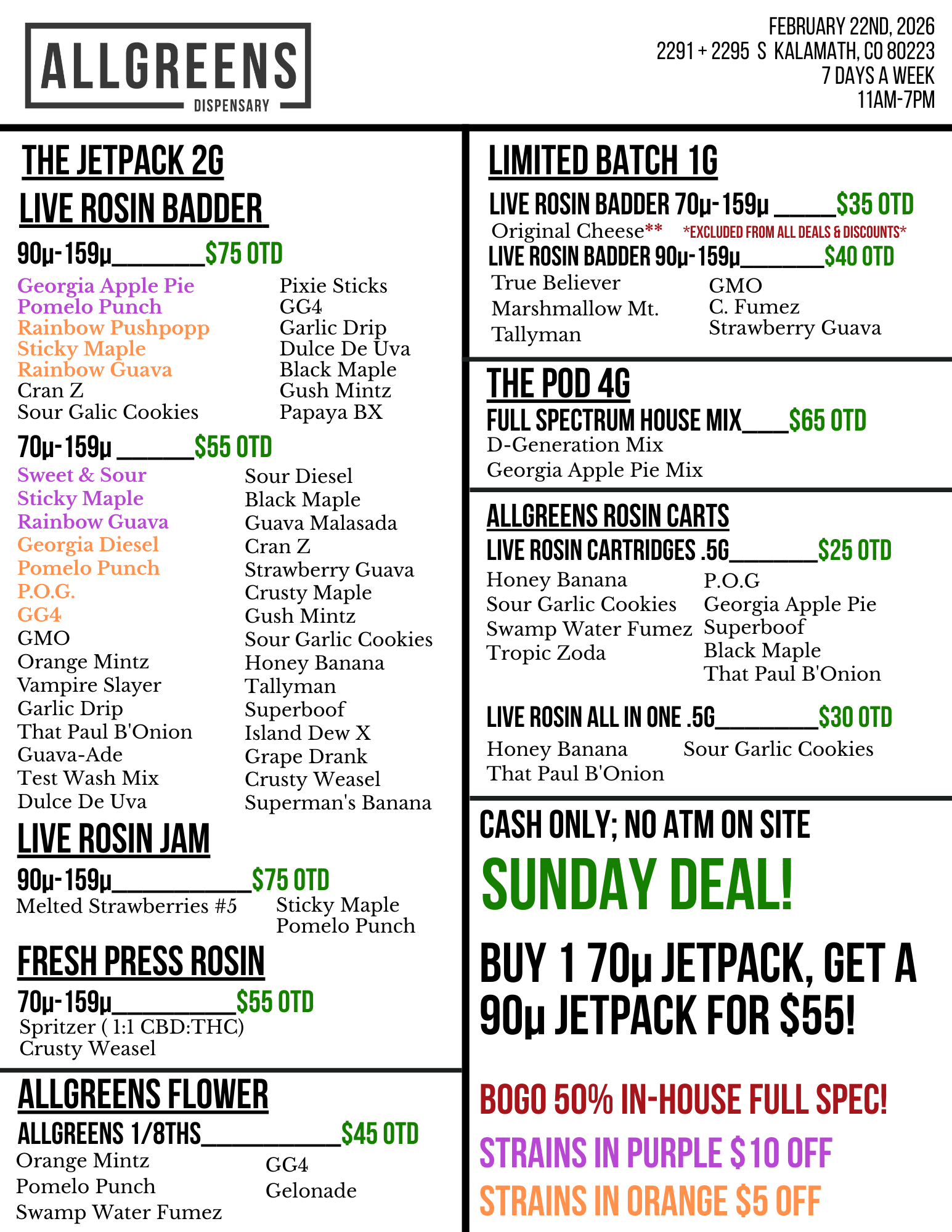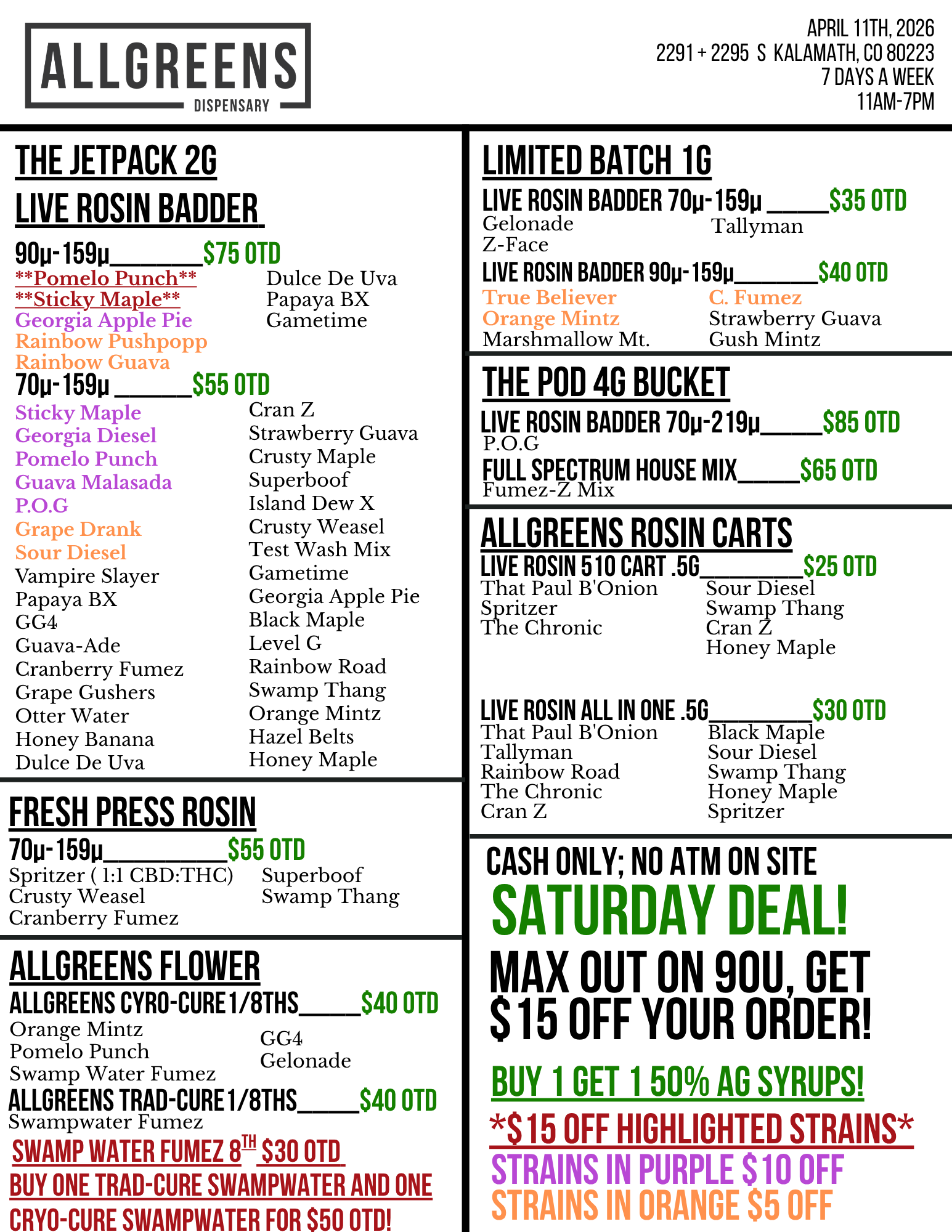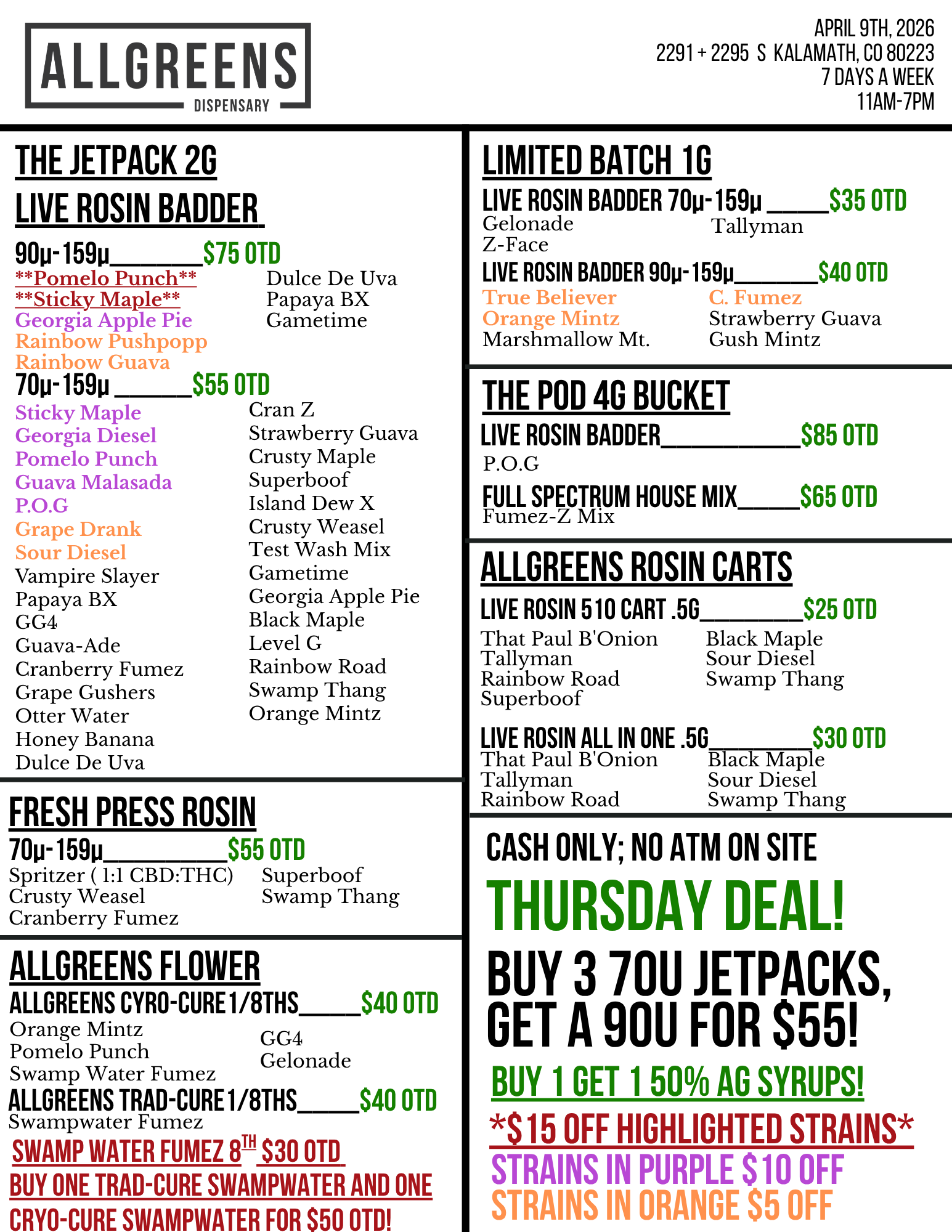 Our move into the Rec market isn’t about chasing trends—it’s about showing that a dispensary can grow while staying true to its roots. We’re not here to push commercialized mids—we’re here to set the bar for premium cannabis concentrates and top-tier dispensary experiences. We’ve been leading the industry since day one, and we’re not stopping now. We’re proud to create connoisseur-grade products with care, passion, and an unwavering commitment to quality. Allgreens started as Colorado’s first licensed medical cannabis dispensary, built on compassion and craft. Now, we bring that same quality to the recreational market — without compromise.