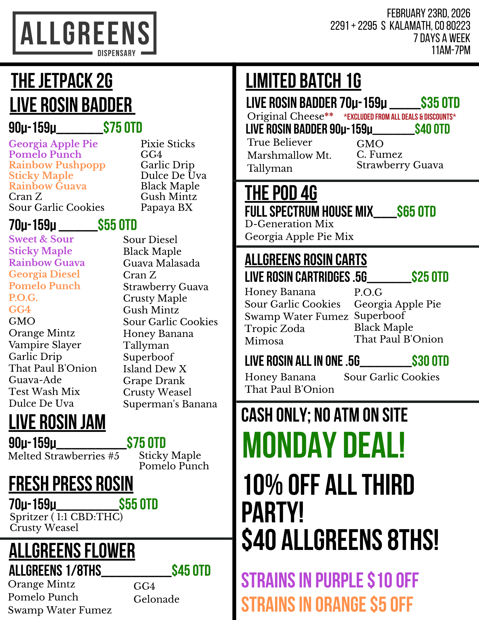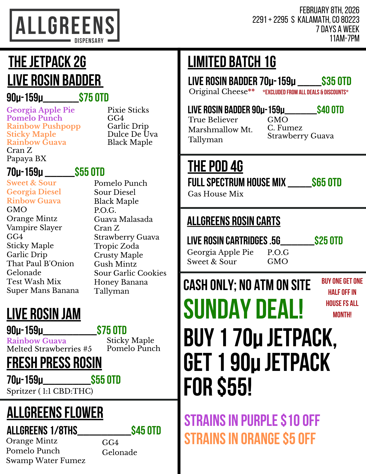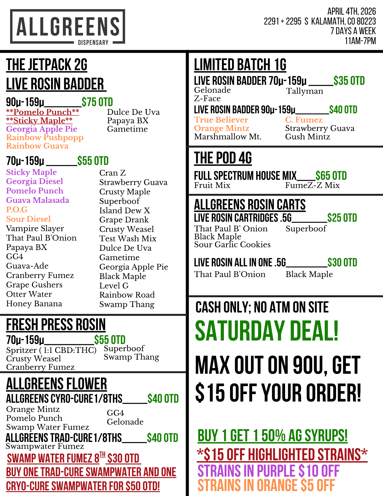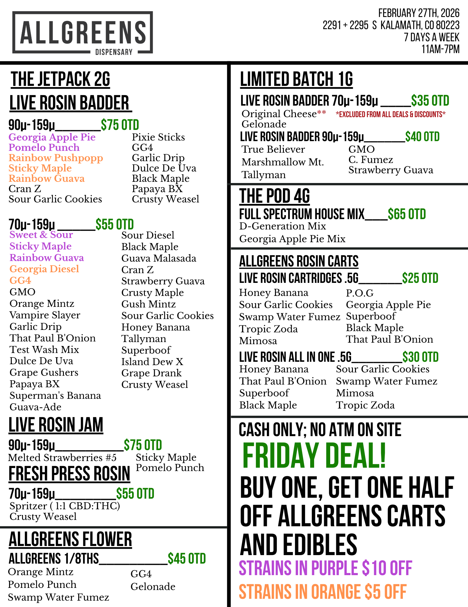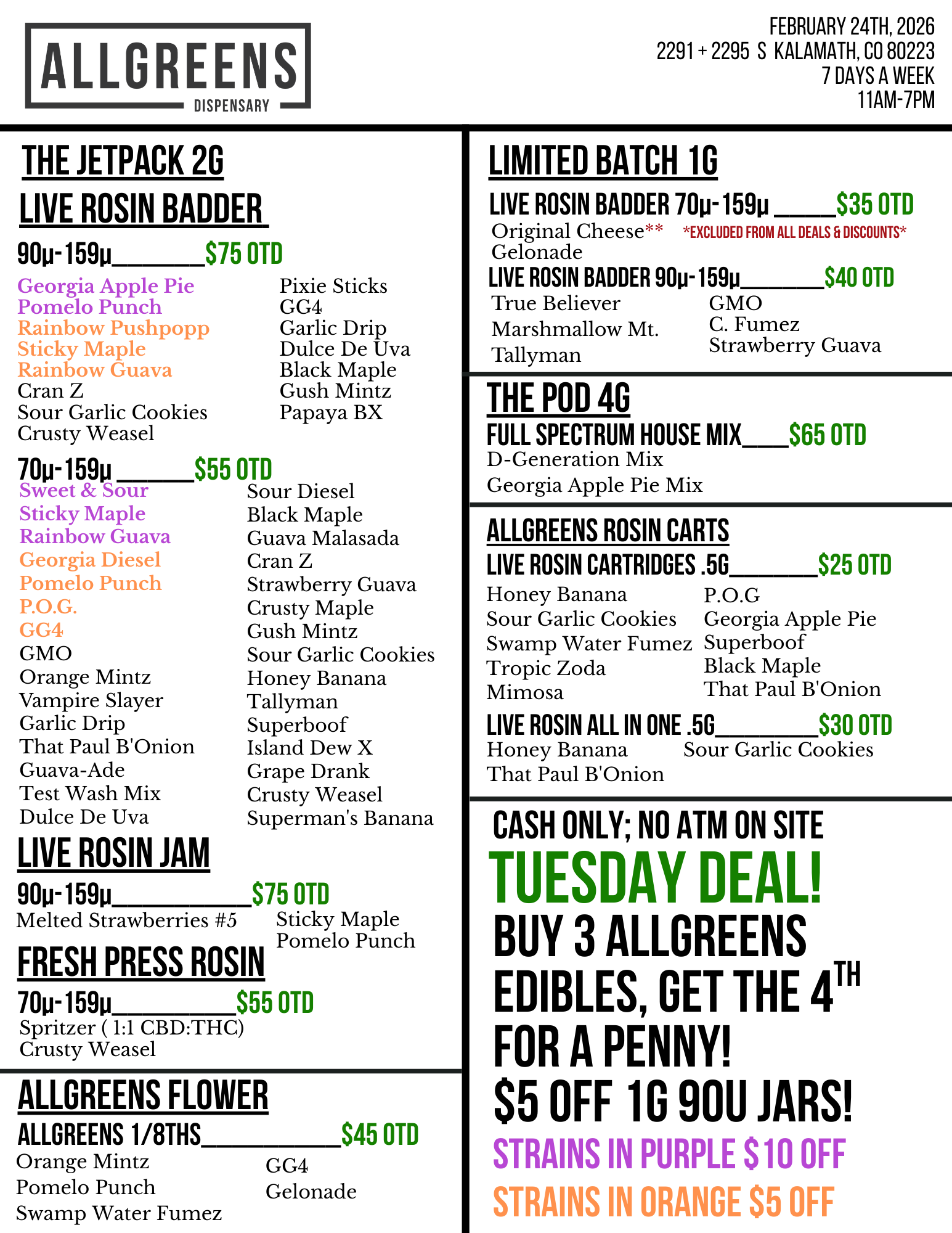 Our move into the Rec market isn’t about chasing trends—it’s about showing that a dispensary can grow while staying true to its roots. We’re not here to push commercialized mids—we’re here to set the bar for premium cannabis concentrates and top-tier dispensary experiences. We’ve been leading the industry since day one, and we’re not stopping now. We’re proud to create connoisseur-grade products with care, passion, and an unwavering commitment to quality. Allgreens started as Colorado’s first licensed medical cannabis dispensary, built on compassion and craft. Now, we bring that same quality to the recreational market — without compromise.